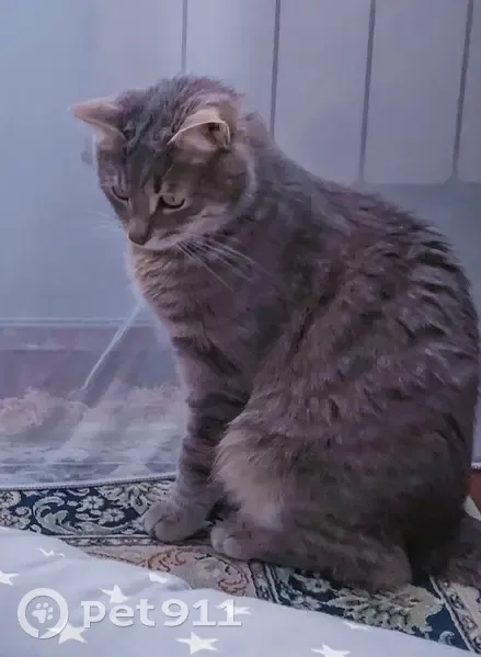 Окрас светло-серый в полоску, глаза зеленые, без ошейника.Пропал на ул. Тайнинской.Возможно убежал через участки в сторону 1- ого Калининского переулка и заблудился. К людям чужим не идёт.Может прятаться в сарае или под чужим домом.
