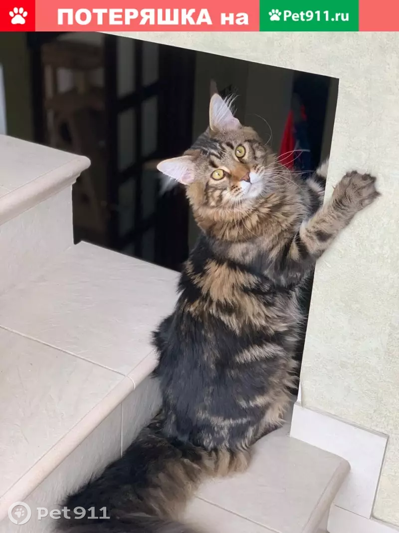 Сегодня вечером 15 сентября пропал наш любимый котик. Порода мейн кун. Возраст 1 год. Окрас тигровый. Вертикальные и параллельно расположенные полосы. Бежевые и серые полоски сочетаются с пятнистым узором. Нашедшего очень просим сообщить по телефону: +7 (926) 244-07-60 Ирина +7 (926) 683-01-31 Аркадий Вознаграждение Гарантировано!!!