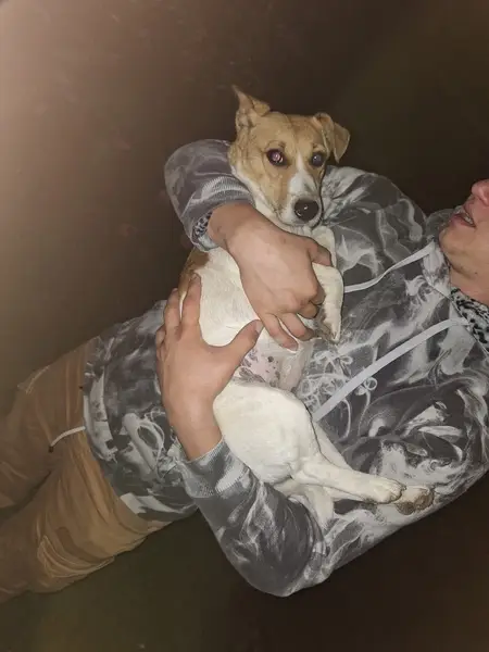 Джек-рассел, девочка, 1 год, белый окрас, без пятнышек, головка рыжая, есть клеймо на животике.