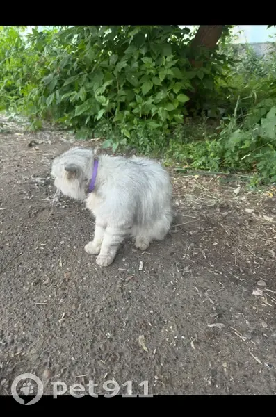 Кот/кошка породистая, была домашней, потерялась или выкинули. На шее ошейник фиолетовый/сиреневый. У малыша имеются ранки (какой-то нарост на спине, при касании дергается). Очень ласковая, идет на контакт, не боится и дает себя потрогать (сразу нежится).