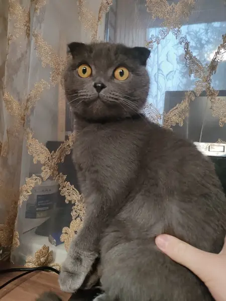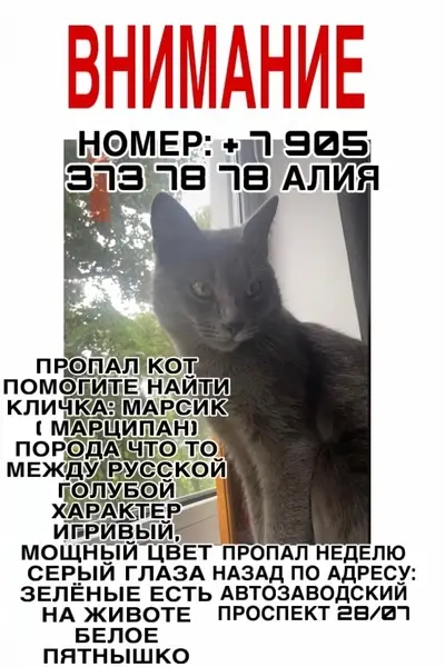 Найдена кошка дымчатого серого цвета, с оранжевыми глазами. Маленькая, странновато ходит, будто хромает. По характеру очень ласковая, спокойно пошла в руки. Найдена была около остановки "Гостиница Татарстан" со стороны школы, покормили, но дома есть больные животные — взять к себе не можем. Временно сидит в подъезде.