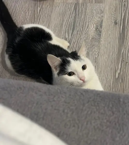 Найден возле дома. Окрас белый с серыми пятнами. Возраст 1 год. Сильно мяукал чем обратил на себя внимание. У него сильный ушиб либо кто то пнул его, либо упал с окна. Сейчас он находится на передержке, но завтра его уже не смогут у себя держать. У хозяев собака на кошек кидается и он окажется опять на улице. Может найдется добрый человек который может взять его себе. Котик спокойный. Ходит в лоток. Мебель не дерет. Отзовись хозяин или тот кто возьмёт его к себе.Котик кострированный.