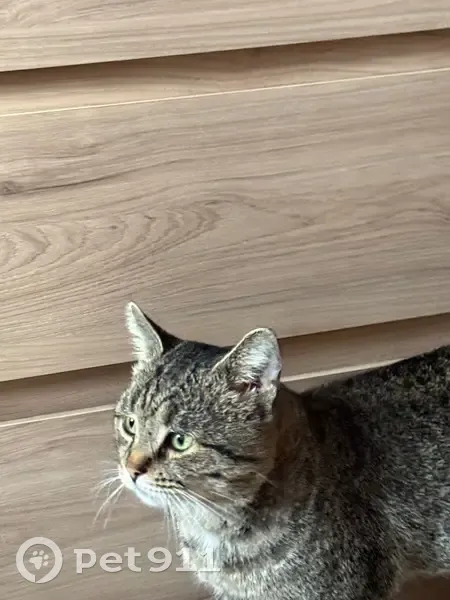 Полосатый окрас, цвет шерстки коричневый с серым, на животе пятнистый окрас, глаза зеленые, крупного размера, не кастрирован. В день пропажи просился на улицу, мы его выгуливали иногда под присмотром, а летом и ранней осенью жил в деревне с отцом, там свободно гулял. В городе самостоятельно не гулял.