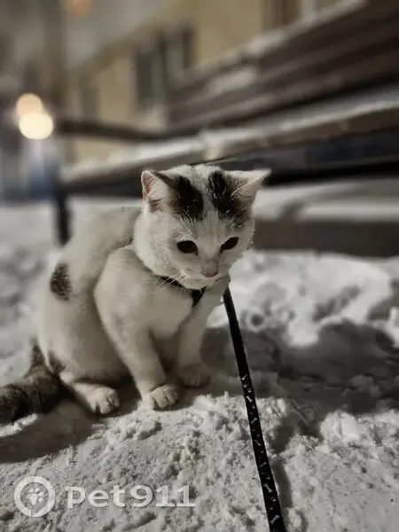 Трёх цветная но больше белого цвета. Левая сторона вся белая, на правой залысина и шрам т. К. Три дня назад была операция по стерилизации. Она любительница выбегать в подъезд и вот сын придя со школы в 13:18 не заметил что она выбежала в подъезд, а через минут 20 ее на улицу выпустил мужчина. И все больше её видно не было