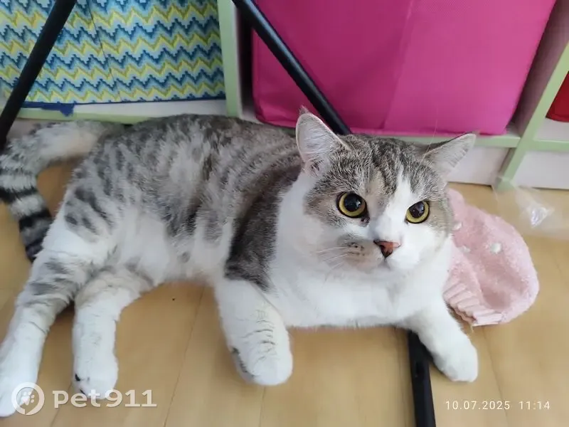 Кот кастрированный ему 5 лет, сейчас после стрижки начал отрастать. Поэтому немного не такой цвет. Он не худой, снизу весит жирок. При установке глазка кот убежал, заметили чуть позже, но в подъезде и на улице не нашли.
