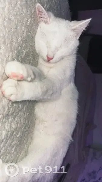 Белый, голубо-зеленые глаза больше к зеленым, среднего размера, примерно месяцев 7-8 ему, не кастрирован. Не сильно любит чужих людей, но к многим относится достаточно ласково, не агрессивный, игривый, последние дни планировали кастрировать, так как просил кошку, мяукал громко(обычно как будто и не умел мяукать) и искал как будто по квартире, любил отнимать почищенные семечки, и даже за семечку, когда говорили «кругом» он кружился, но это редко, когда только выпрашивал семечки обычные. Любит спать зайчиком или перевернутым на спине.