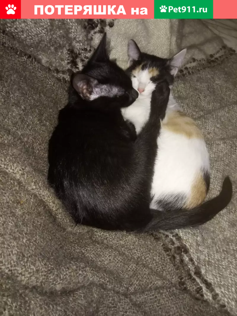 Пропала кошка. ГЭС, 4 комплекс. Трёхцветная, маленькая как котёнок. Зовут Соня. На кличку откликается плохо. Стерилизована. Недавно после болезни, сильно лезет шерсть. Пугливая, на улице никогда не была. Прошу нашедших или видевших сообщить по номеру или в лс vk.com/alreya Кошка - член семьи. Её дома ждёт братик (чёрный кот на фото) и человеческие родители с ребёнком.