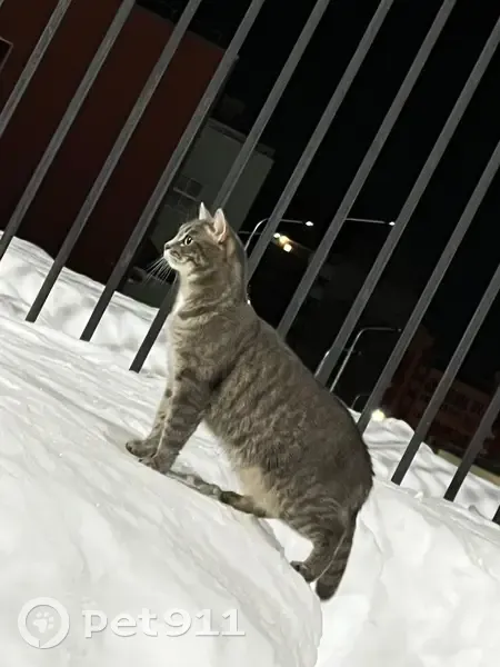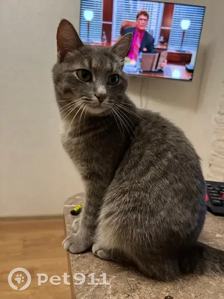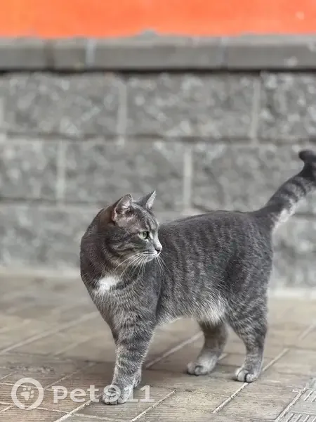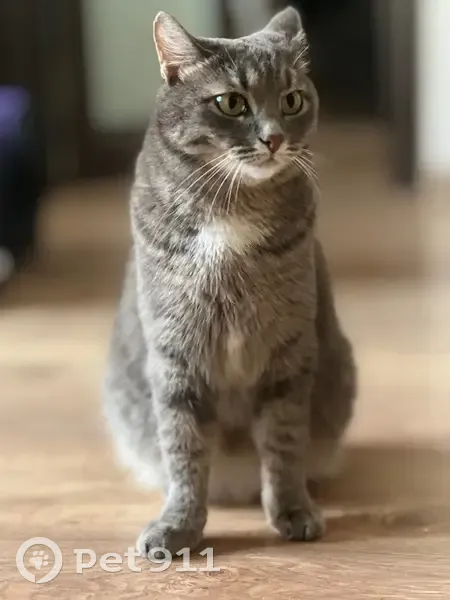 Потерялась кошка с 25.09 в районе ул. Цветочная/ Хвойная Возрастом 5 лет, цвет полосато серый с белым пятном на груди, Из особенностей хвост прокушен в месте прокуса нет шерсти, отвлекается на Мармил кт 89934007947