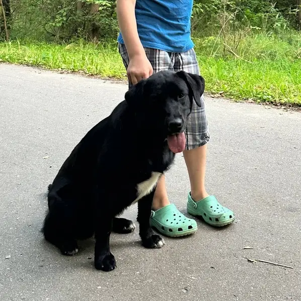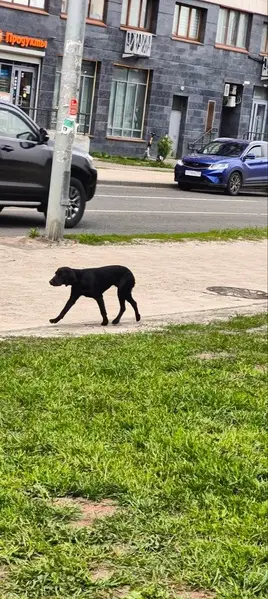 Черный , примерный возраст 4 года . Сбежал ночью из дома с 26 на 27 октября . Если хозяева одевали то красный ошейник , добрый . Кличка фил . Сбежал из частного сектора Нахабино ул . Дзержинского 18