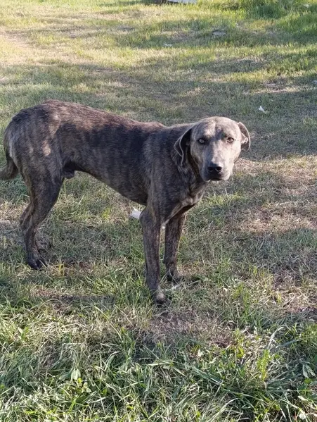 Кобель, возраст примерно год, порода предположительно немецкий стафф (но не точно ). Добрый, игривый, хорошо ладит с детьми. Связывайтесь по номеру или в ЛС.