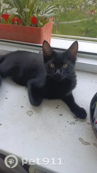 черный ,на пузике белое пятно ,4 месяца ,выпал с окна 31 июля 2025г.