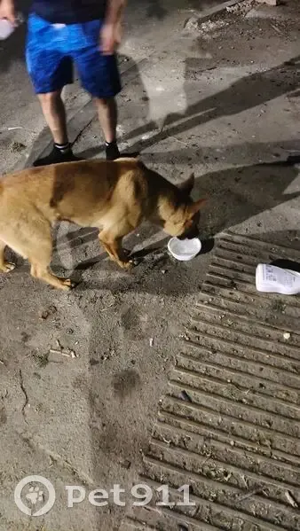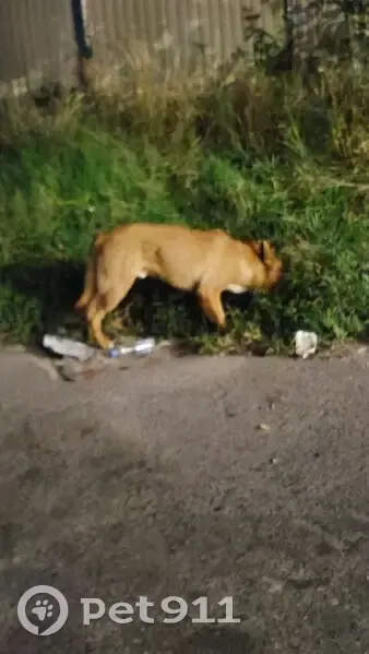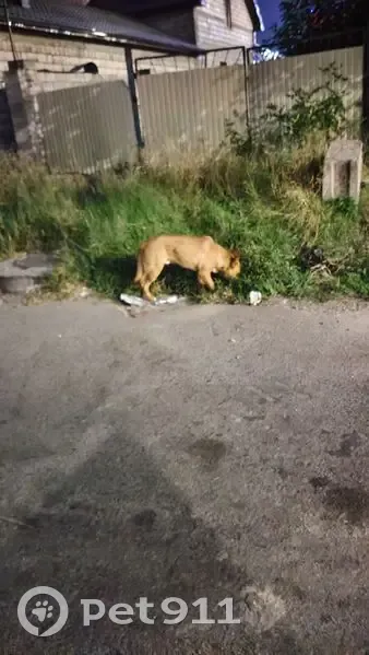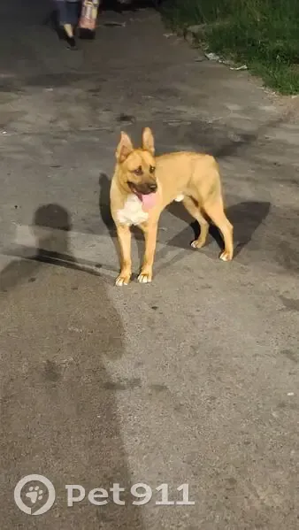 Собака золотистого окраса, чуть выше среднего роста, нос темный. Бегает по еврейской колонке, без ошейника. Вид ухоженный, видно, что собака потерялась.
