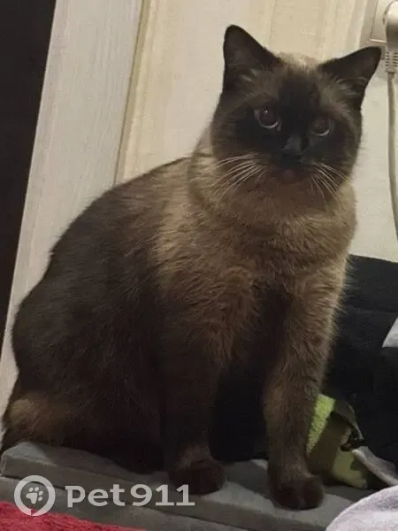 Окраска коричнево-бежевая, на спине черное пятнышко от лишая и в том месте мало волос. Толстый, кончик хвоста поломанный. Голубые глаза и большая мордочка. На имя очень редко откликается, может подойти на кис-кис. Потерялся 24 октября, когда дедушка собирался на работу, приоткрыл дверь и кот сбежал