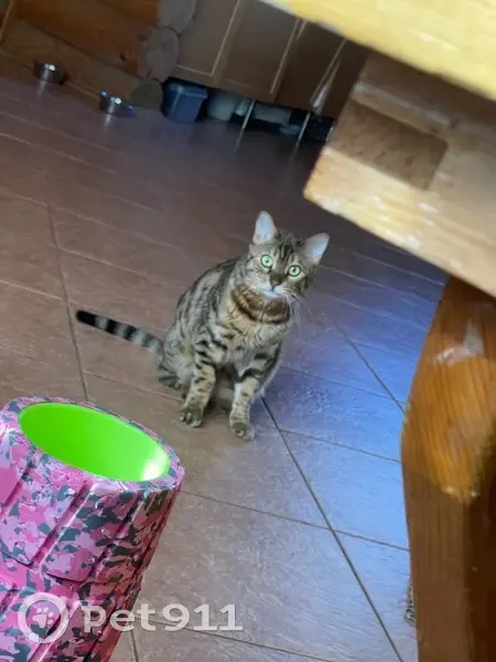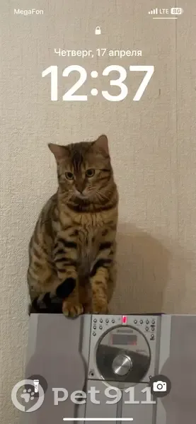 Окрас леопардовый, порода бенгальская На спинке немного содрана шерсть ( еще не отросла) кошку забрали с нашего поселка «потому что понравилась детям» и увезли в Наро-Фоминск, решили выпустить погулять, соответственно убежала (нашли концы этой истории только сегодня), кошка жила в Апрелевке, в частном доме