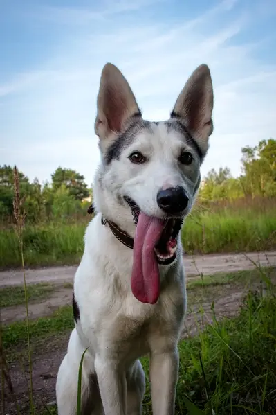 Потерялась собака , по кличке Венера, 10 месяцев , в чужие руки не дается , потерялась 13.02.2025 года в 10 утра, сорвалась с поводка , убежала вместе с ним, поводок черно-желтого цвета, а сама собака бело черная с розовым носом, среднего размера, худая , без адресника , течки не было