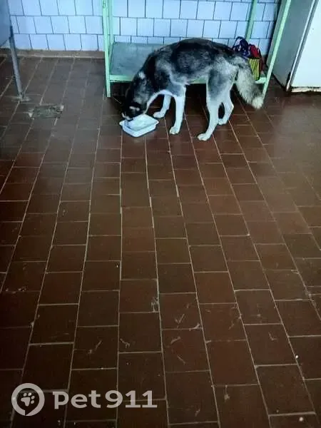 Окрас Темно серый , с белым, мордочка нос беленький, где холка пятно белое. Туловице черно-серое. Левый глаз голубой , правый темно карий (черный). Сбежала со двора, выкопала подкоп.