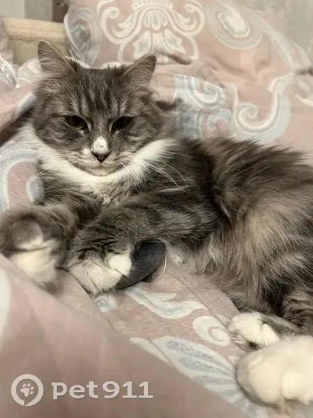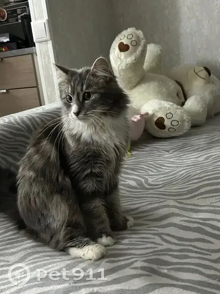 Пушистая кошка ,пугливая Отличительная особенность :лысоватое пузико(делала ей узи ) Выбежала из переноски ,которая была в машине На кличку откликается,но не всегда