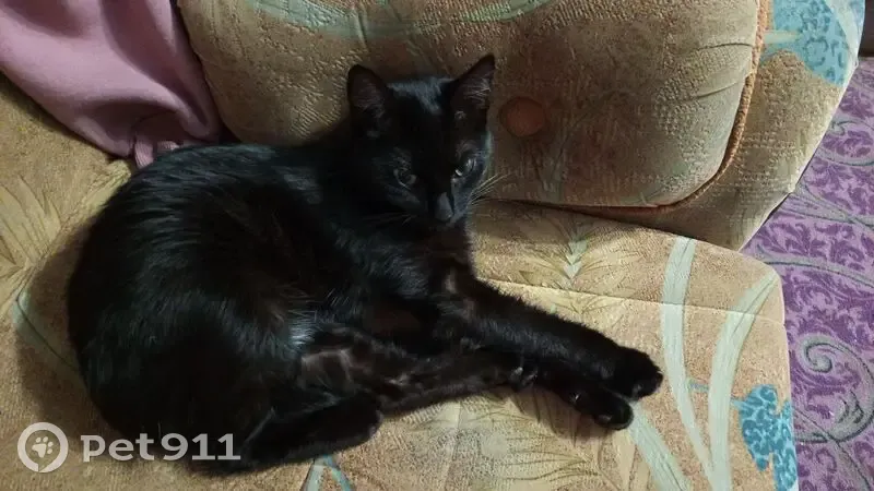 Черная, на животе белое пятно. На шее и груди несколько белых шерстинок, гладкошёрстная. Выросла в семье кошек, неохотно идет на руки. Потерялась в городе Галич Костромской области на вокзале