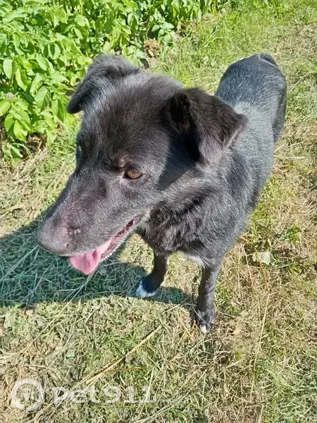 Чёрного цвета, рост чуть выше среднего, имеются характерные следы от ошейника.