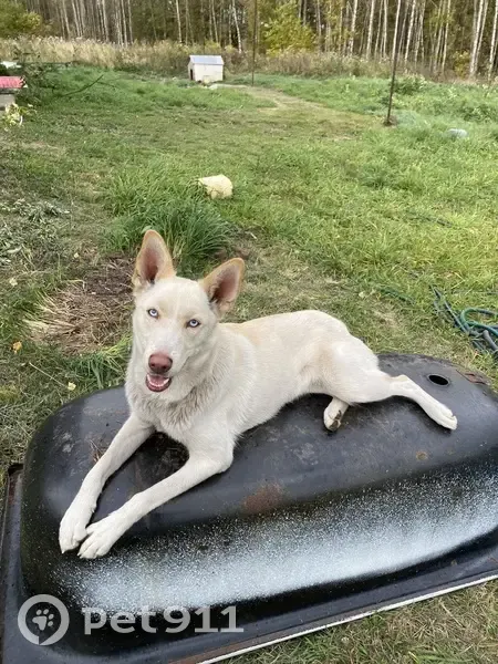 Убежала в паре с кобелем, они похожи. Он чуть крупнее,разноглазый.