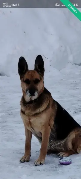 метис овчарки, рыже-черный окрас, белый кончик хвоста.
