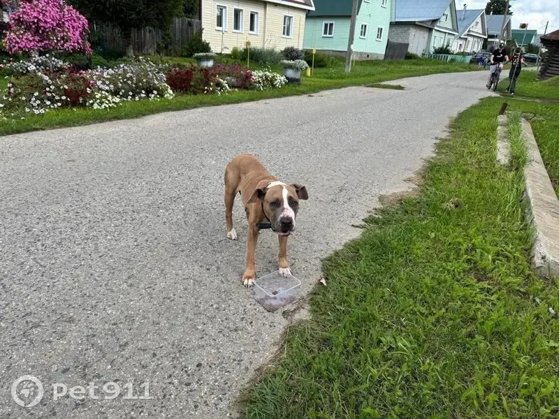 В деревне Пантелеево ( Богородский район) появилась собака. Молодая сука в ошейнике. Прибилась к одному из домов. Воет. К себе не подпускает. На еду пошла. Разрешила деликатно себя погладить. Ищем хозяев! На улице холодает. В дом такую собаку не возьмешь. Неизвестно как она ладит с другими животными и детьми. Сейчас собака в приюте « Сердце Стаффа»