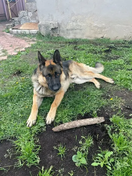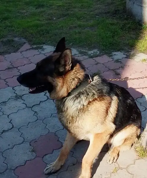 Найдена немецкая овчарка, кобель, в садах напротив Б. Козино. Прибилась к дому и не уходит несколько дней.