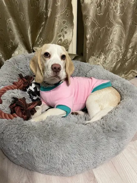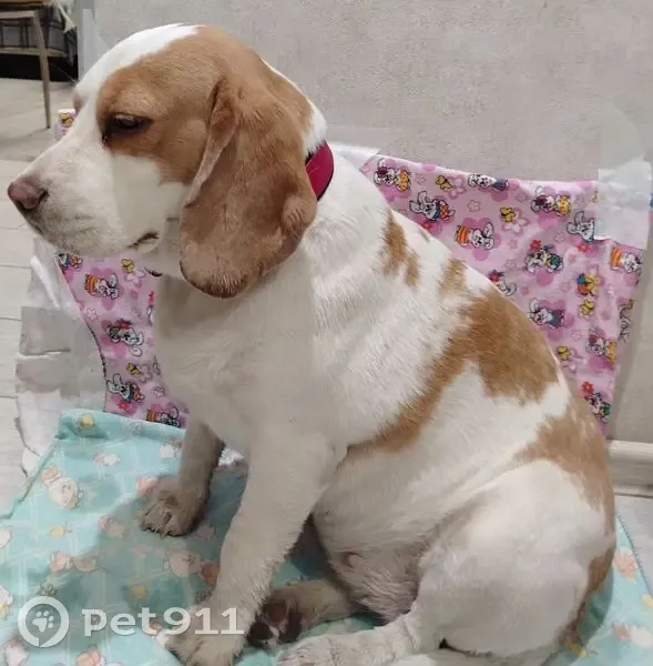 Девочка породы бигль. Очень добрая. Дома не лает. В туалет ходит на улицу. Была найдена около НИИСА ул. Тропинина. Собачка временно у нас. Но долго держать не сможем. Может у кого будет возможность взять себе на передержку.