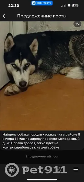 Найдена собака пр Молодежный 76,девочка,добрая хорошо идет на контакт,прибилась к домашней собаке.