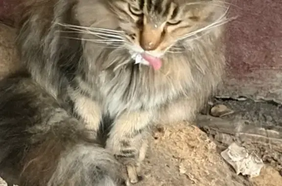 Окрас серая с белым на животе. Порода Мейкун. Серый ошейник с адресом. Всего боится. Ночью в 02:00 вышла за пределы охраняемой территории и пропала.