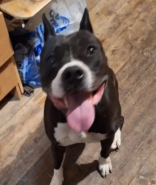 Пропала собака. Порода:стаффард . Возраст: 1 год 6 месяцев Окраска: бело-коричневая .Откликается на "Чили, Чилиза", . Кто найдет или знает ее местонахождение позвоните: