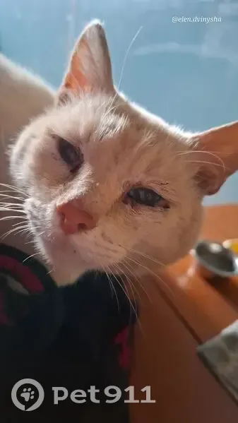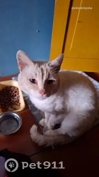 Неделю назад пришёл кот белого окраса с рыжеватыми полосками на хвосте, мордочке и с такими же рыжевытыми ушами. Кот очень добрый, невероятно ласковый с голубыми проникновенными глазами. Немного слезятся глазки (после недельной обработки стали лучше), хромает на заднюю лапку.