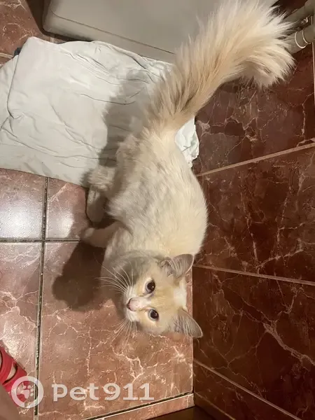 Найден кот в районе ул. Станиславского Сормовского района. На спине есть чуть заметные вкрапления пепельного. Голубые глаза. Общительный, ласковый. Похож на Невскую Маскарадную.