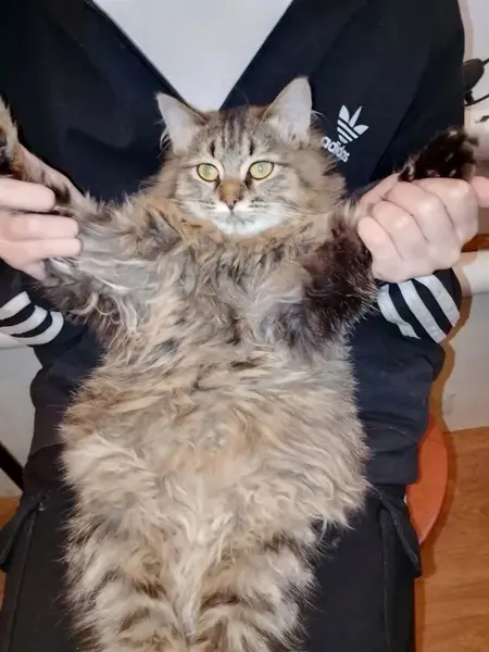 Кошка черепахового окраса с выбритым боком. Видимо, после операции. На боку шов. Длинношерстная. Просила кушать возле магазина. Забрала домой. Кошка ласковая, ручная и очень деликатная. Лоток на отлично. Игруля.