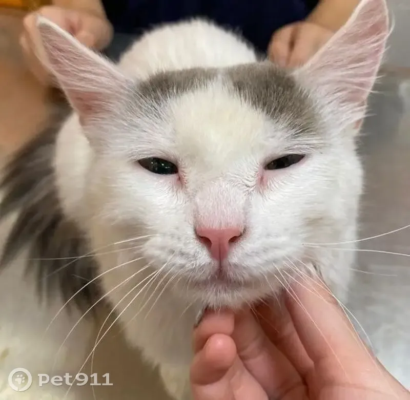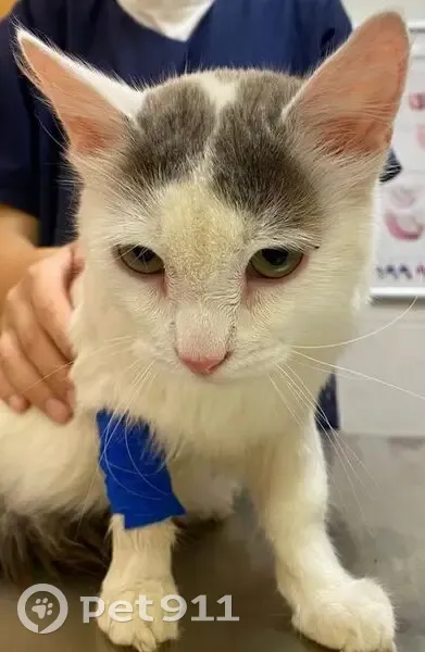 Белый пушистый кот с серым хвостом, невероятно ласковый, тянется к человеку. Был взят на очень временную передержку, кастрирован, вакцинирован, лоток на отлично