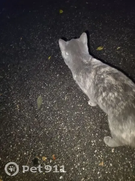 На вид около года и похоже что это кошечка. Серый окрас с палевыми пятнами на спинке. Красивая мордашка, выразительные глаза. Ласковая, контактная кошка. Ходит плачет . Может кто узнал питомца. Саоего