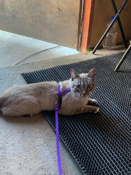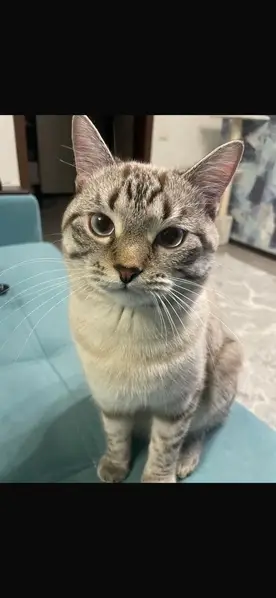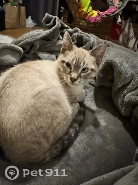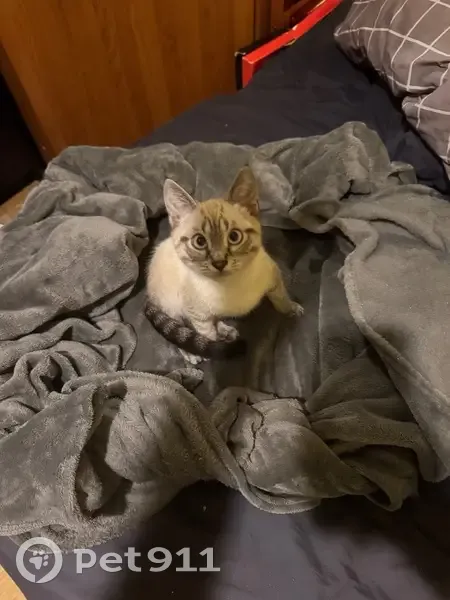 Зашел в студию , скорее всего выпал из окна, немного хромал по началу и есть болячка на лапке. Мальчик , видно что домашний, находится рядом , если уходить начинает переживать.