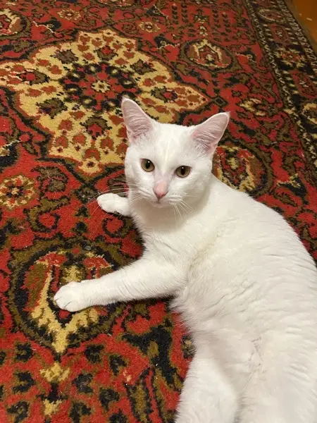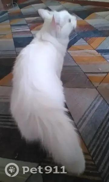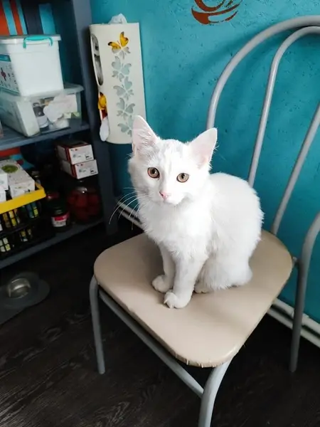 Белая/ый кошка/кот с розовыми ушами. Жёлтые глаза. Был/а найдена на ветке в полтора метрах над землёй. Ведёт себя так, словно никогда не выходил/а на улицу и не видел/а ничего кроме собственного дома Хозяину нужно будет очень сильно постараться объяснить, как его домашнее животное потерялось и назвать его/её индивидуальные приметы (Адрес, где была найдена: Автозаводский район, Борская улица, 15)