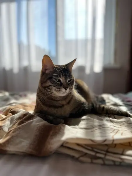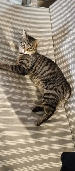 Приплюснутая мордочка, коричнево полосатый окрас. На холке выдран клок шерсти, но уже все зажило. Забежал в квартиру из подъезда, в нашем подъезде такой кот не проживает. Предполагаем, что жил где то рядом. Кушает только сухой корм. Ходит на лоток. Ласковый, рук не боится. Живёт у нас третьи сутки. Оставить себе не можем, так как у нас живут птички.