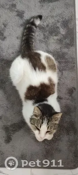 Найден кот, явно домашний, чистый, скорее всего кастрированный. Никого не боится, зашел в дом через кошачьи дверцы. Видимо сбежал и перепутал дома, а обратно дорогу найти не может.