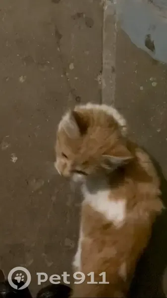 некрупная кошечка (или кот, пол неизвестен). Пугливая, слегка кусалась, но сама начала ластиться и выглядела дезориентированной и суетливой. Была голодна, охотно поела корм. Кажется невзрослой, скорее подростком. Глаза желтоватые