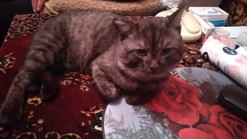 Молодой котик породы шотландская вислоухая.Очень спокойный. Возраст 3-4 года, здоровый, бока и спинка в колтунах.Очень скучает по хозяевам.Котик не кастрирован.