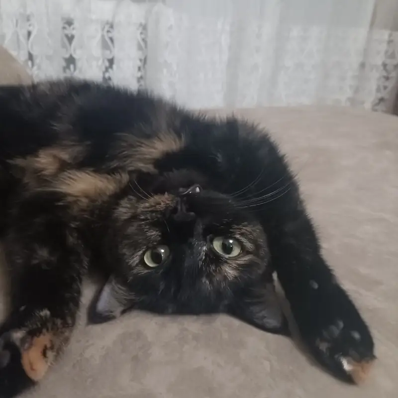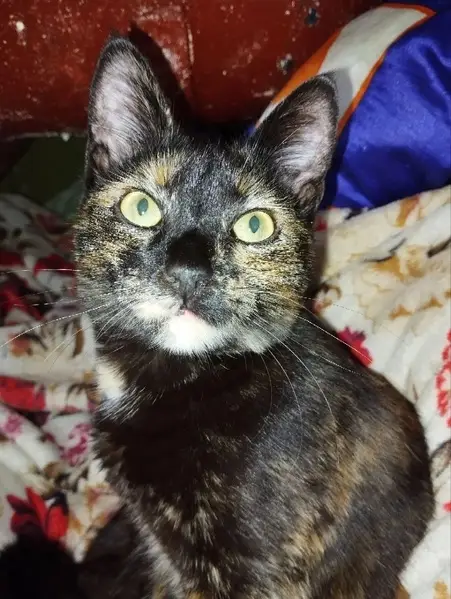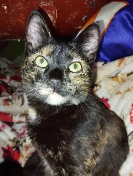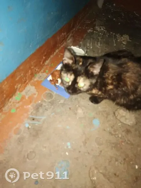Утром 18 числа встретил в подъезде. Вечером там же, покормили, погостила у нас. Пятнистая рыжими , белесыми пятнами, на левая задняя лапа рыжая. Темно пепельный окрас