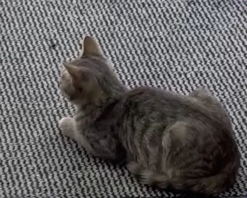 Греется около пятерочки на советской армии. К людям идет, болтает, пузико даже есть, видно, недавно убежал. На шее бордовый ошейник от блох.