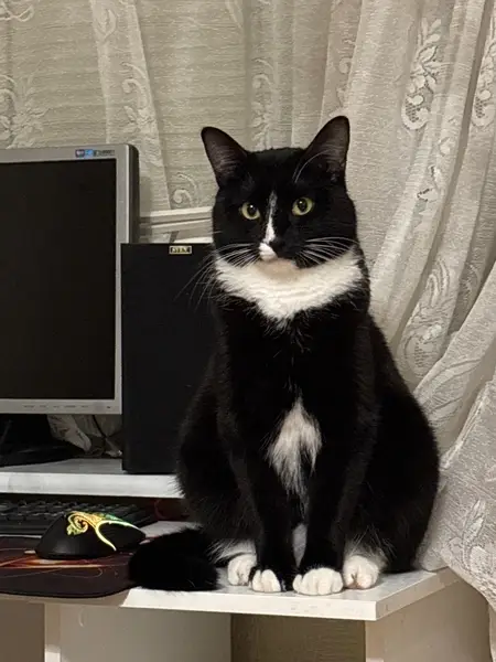Найден кот (или кошка) на парковке перед 105 домом ул.Бурнаковская. Прятался под машинами и мяукал. Ухоженный, на уличного не похож, возможно, убежал.