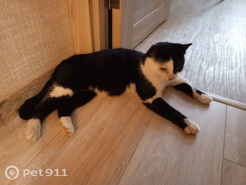 Очень ласковый кот черно-белого окраса прибился к детям во время прогулки, кот скорее всего из частного сектора, улично-домашний. Дома ведёт себя прилично, лоток знает, на стол не лазит и тд. Очень плакал, бросался женщинам под ноги