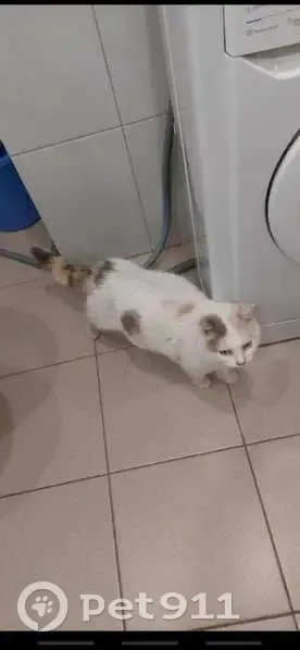 Найдена кошечка, уже была стерилизована,а значит были хозяева,трехцветная,белая с рыже серыми пятнами,очень спокойная,ласковая,скиталась январь месяц,отморозила ушки.