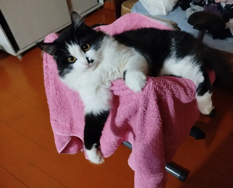 Похожа на вислоухую, хвостик маленький, пушистая, черно-белвй окрас