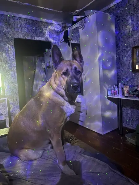 Найдена собака с коричневым ошейником. Сука. Порода - дворняга. Окрас коричнево-рыжий, морда черная, уши висячие. Крупная. Собака дружелюбная, команд не знает. Сильно тоскует по хозяину - воет и скулит по ночам, не дает спать жителям дома. Пытается охранять территорию от чужих, особенно не жалует пьяных. Живет в подъезде на улице Радужная, д. 4А, п. 4. Ищем хозяина или тех, кто хотел бы взять ее себе. Соседи уже открыто выражают свое недовольство и хотят ее прогнать в зиму.