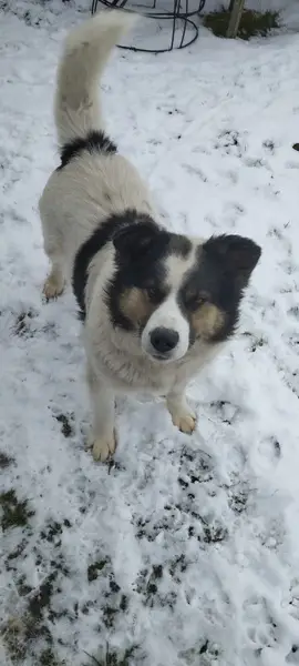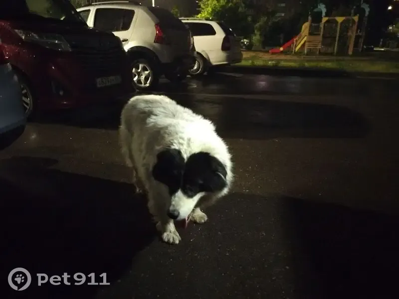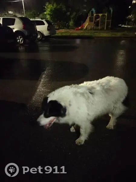 Большой белый пес, но из-за грязи серый (пол неизвестен), морда черная. На ухе обломанная бирка. Очень лохматый. Спокойный, ориентирован на человека. Ходил по Московскому шоссе, заглядывая в каждую машину.